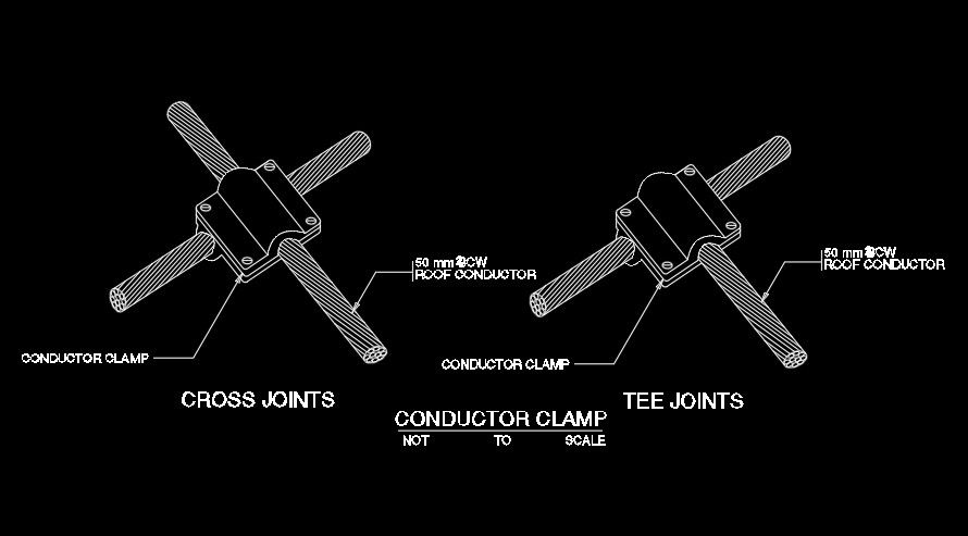 Conductor clamp AutoCAD drawing is given in this file. Cross joint, conductor clamp, 50mm BCW roof conductor details are given. For more details download the AutoCAD drawing file from our cadbull website.
