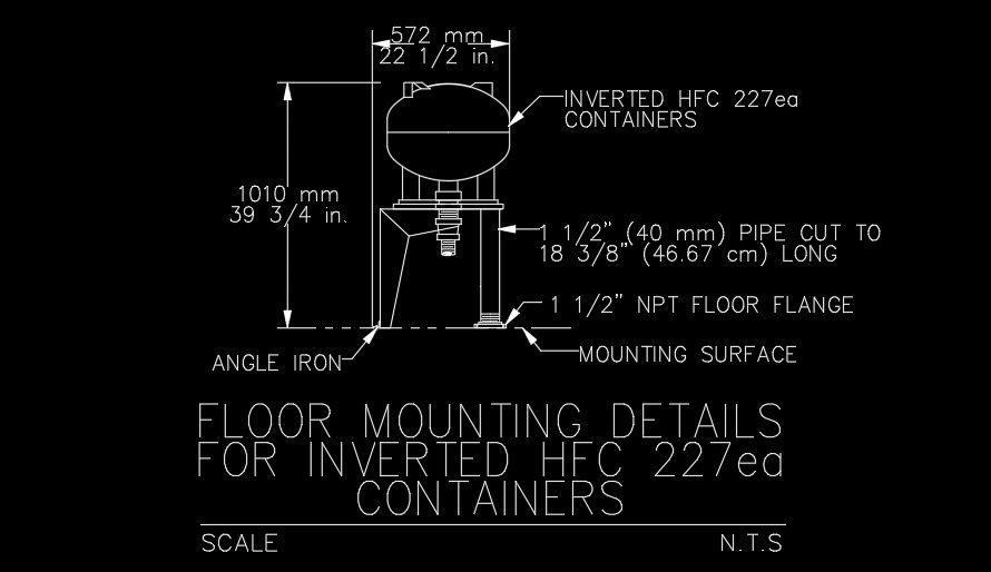 Floor mounting details for inverted HFC container AutoCAD drawing