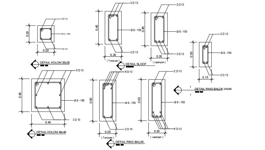 35x11m ware house building column cross section views are provided in this drawing. Totally 7 column cross sections are given. For each section reinforcement and sizes are mentioned. For more details download the AutoCAD drawing file from our cadbull website.