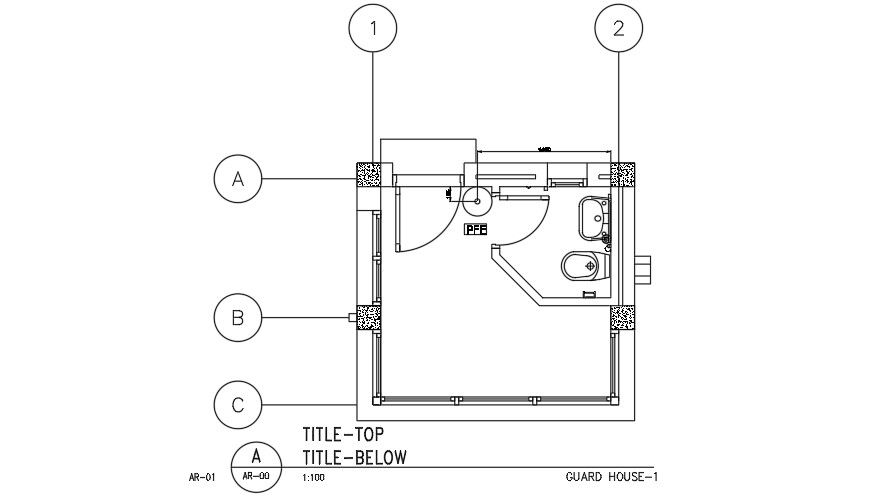 300x300cm guard house plan AutoCAD drawing is given in this file. The attached bathroom is provided in this house. For more details download the AutoCAD drawing file from our cadbull website.
