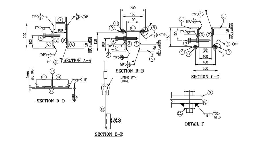 A typical welding connection AutoCAD drawing is given in this file. A section view of the welding details are mentioned. For more details download the AutoCAD drawing file from our cadbull website.