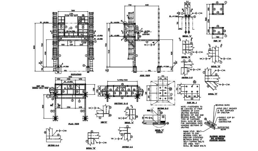 An environmental plant building H beam section view is given in this model. Here, they mentioned about H beam, and I beam which is used for column construction. For more details download the AutoCAD drawing file from our cadbull website.