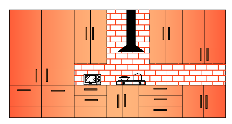 Kitchen elevation in AutoCAD 2D. The front viewed elevation in 2D is shown here. Different sizes with different designs which mainly includes stove and oven. Detail elevation with overhead storage, under platform cabinet, chimney, unit, with detail descriptions and dimensions. The plan shows the front viewed elevation. download kitchen drawing DWG file.
