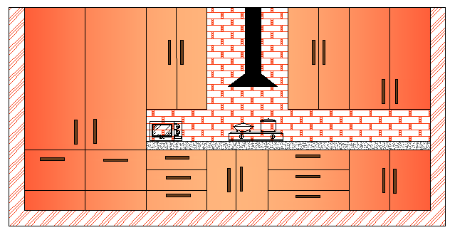 2D Front View Of Modular kitchen With Chimney AutoCAD File.