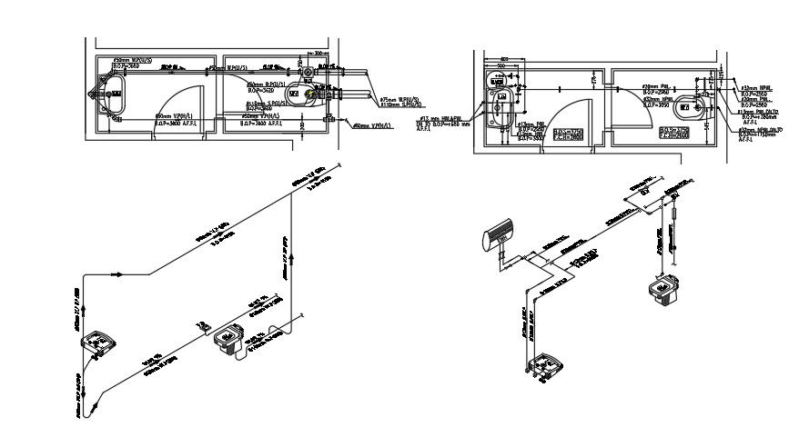 3x1m bathroom sanitary pipe line diameter detail drawings are given in this CAD file. A piping plan and isometric views are given. The dimension of each pipe is mentioned. For more details download the CAD file from our cadbull website.