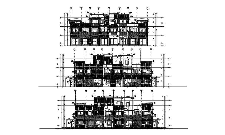 The front elevation view of the 26x19m row house building is given in this CAD file. This is G+ 1 house building. The total height of the row house building is 11m. A maid room is available. For more details download the CAD file from our cadbull website.