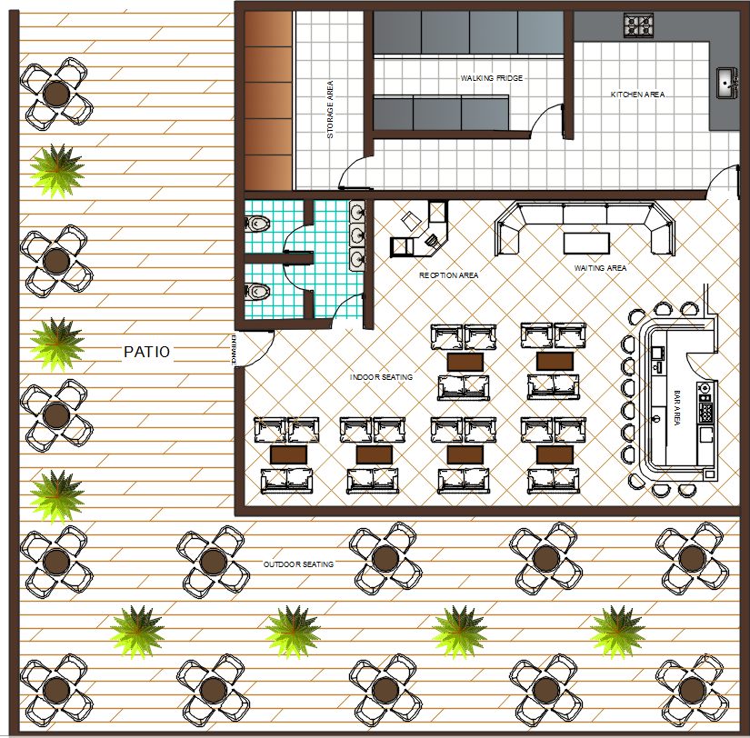 Restaurant CAD plan with indoor and outdoor seating layout design DWG