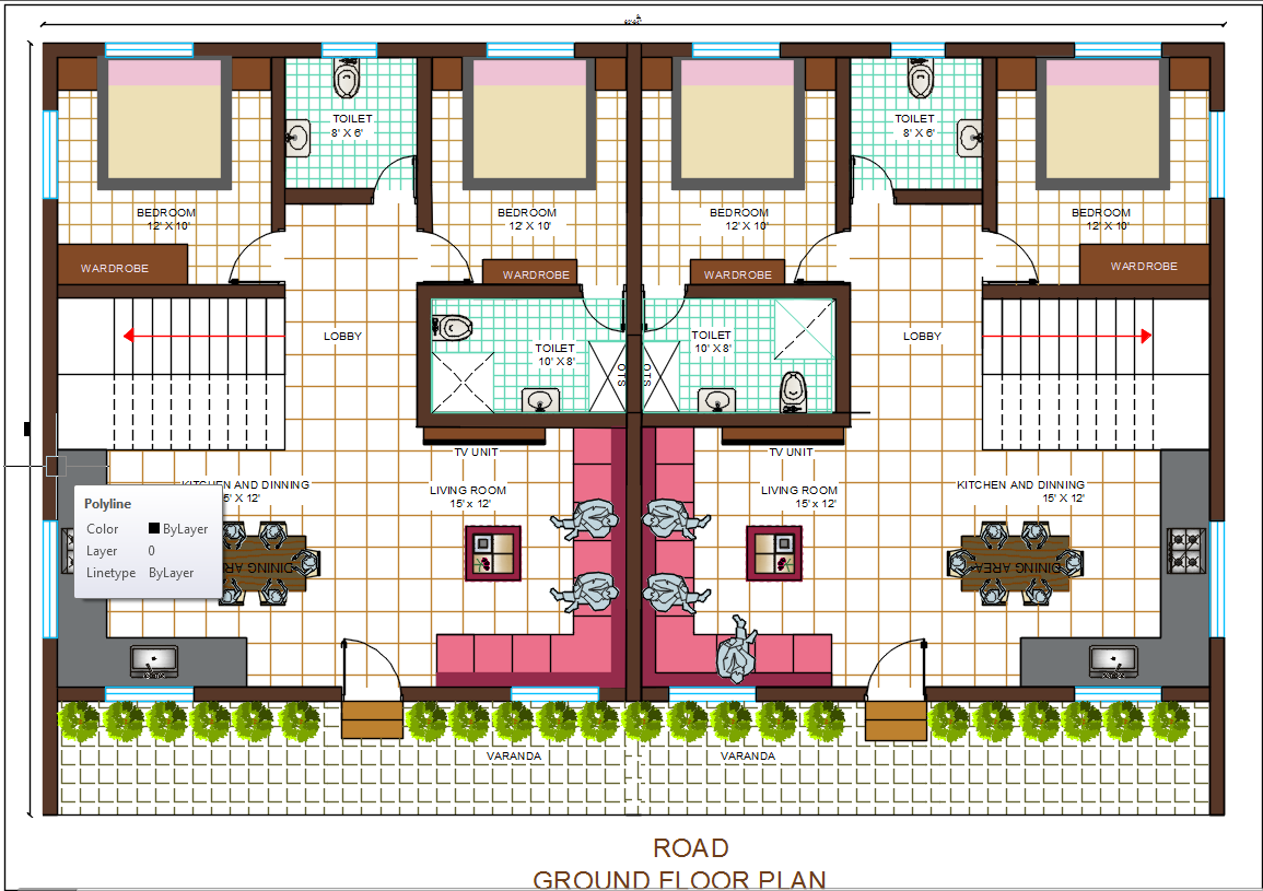Autocad drawing file shows 60' x 40' 2bhk house plan . The total buildup area of this house is 2400 sqft. Ground floor layout plan Autocad drawing details that includes a detailed view main entry gate, main entry house door, living room with tv unit, modular kitchen with dining area, varandah, common bathroom , bedroom with attached bathroom, furniture details and much more of house floor plan. Thank you for downloading the 2d AutoCAD drawing file and other CAD program files from our website.