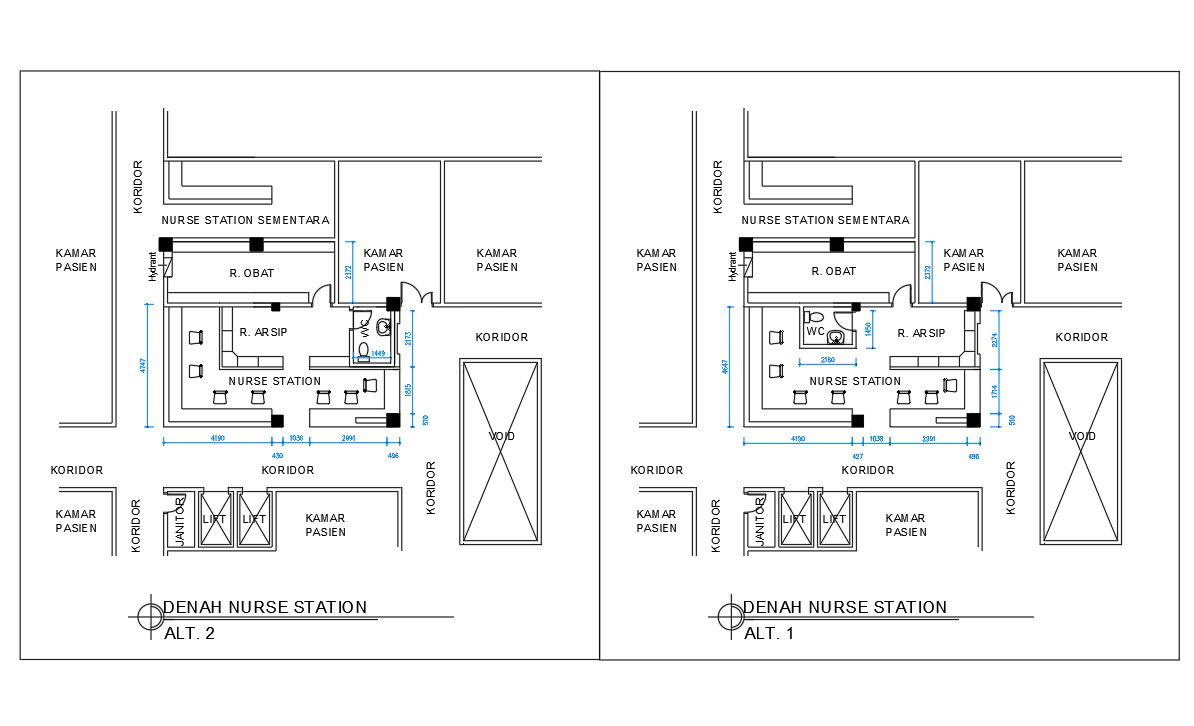 16x17m hospital plan with nurse station is given in this CAD file. Nurse station, corridor, patient’s room, common toilets, and medical rooms are available. For more details download the CAD file from our cadbull website.