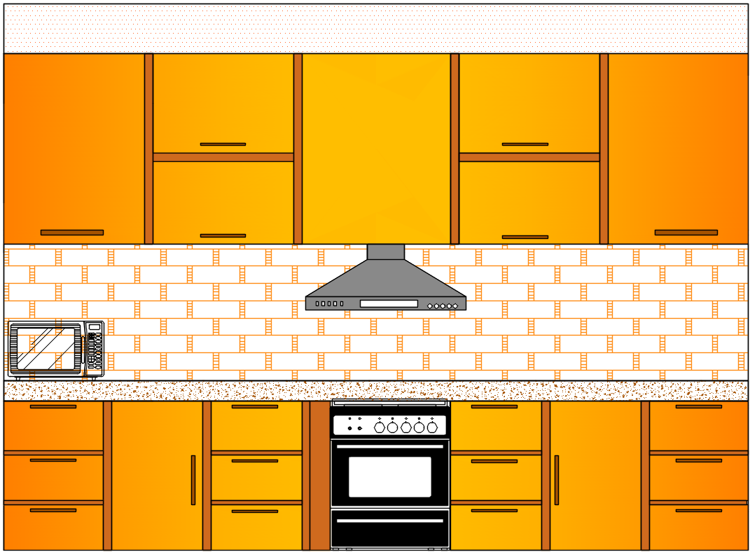 2d CAD drawing details of modular style kitchen elevation design that shows kitchen furniture and automation blocks details of modular cabinets, kitchen exhauster chimney, refrigerator units, and various other blocks details download AutoCAD file.