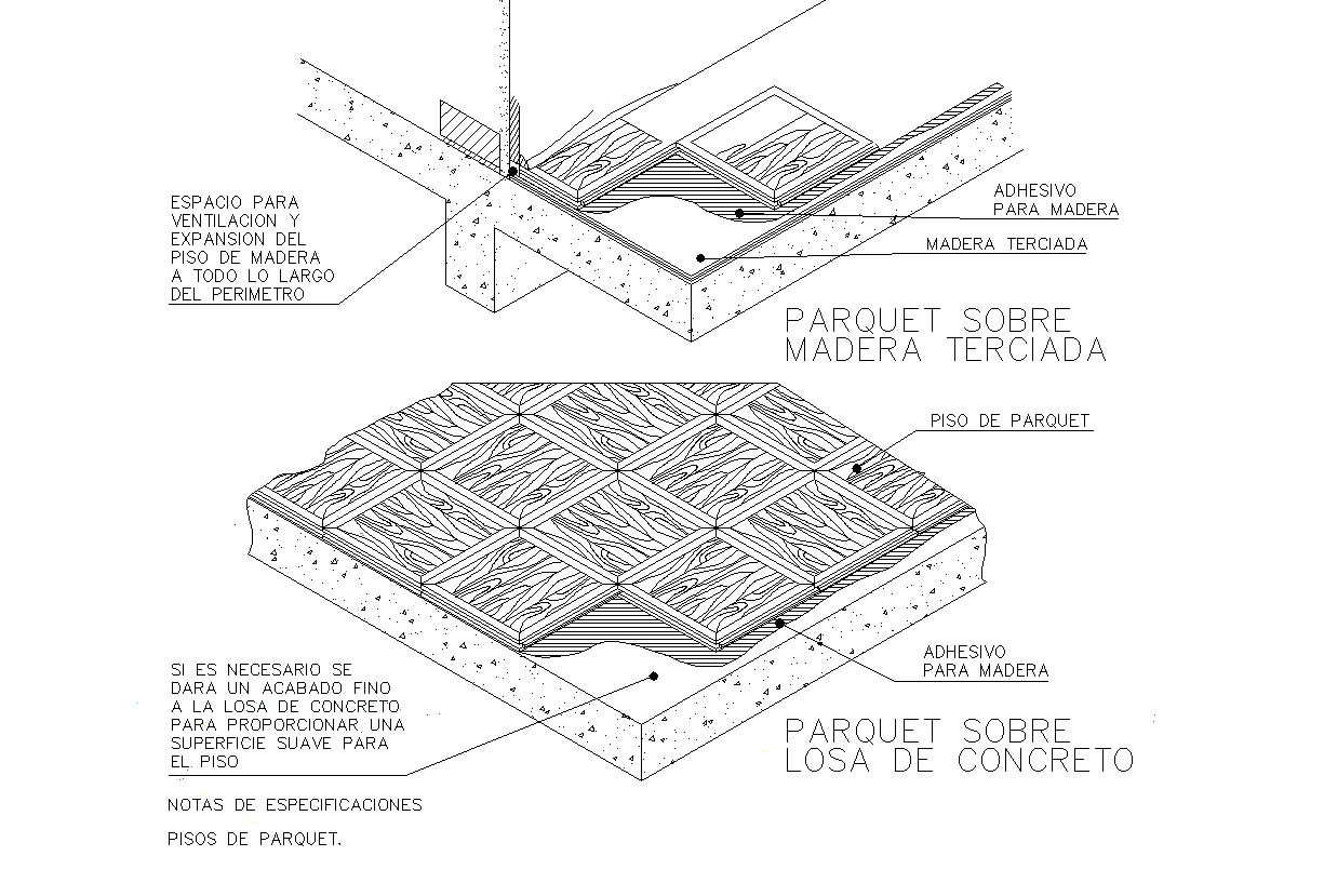 Wooden flooring sections detail. Include isometric view of a flooring.