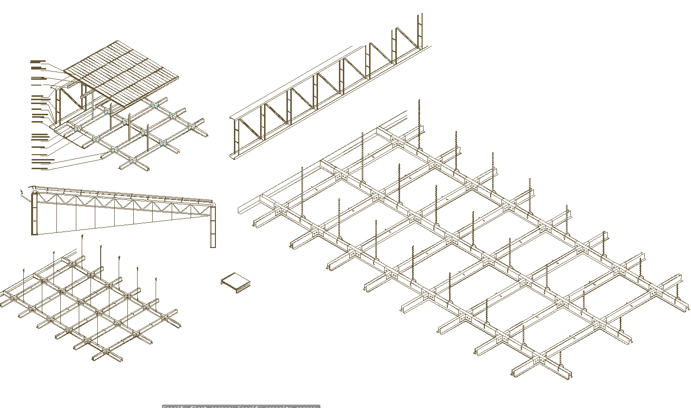 Suspended ceiling sections detail in autocad dwg files