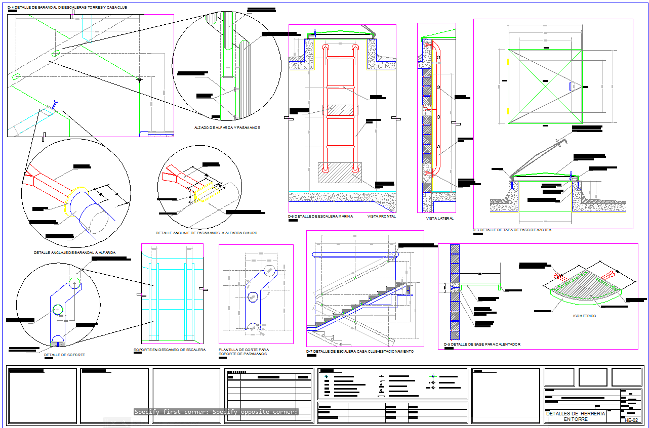 Iron stair detail includes sections, plan, elevations, working plan, and iron fitting detail about stair.