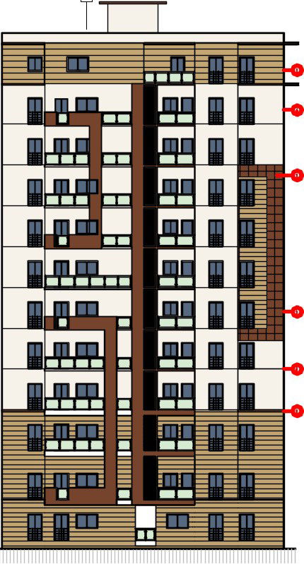 The back side elevation view of the 23x15m multistory apartment building CAD drawing