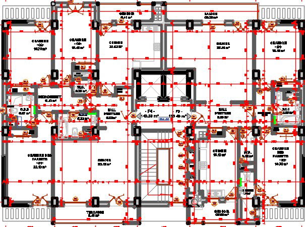 23x15m apartment 4th floor house plan CAD drawing is given in this file. . This is G+ 11 apartment building. On each floor two houses are available. This is a 3bhk house plan. The lift is available on this plan. This apartment house plan given with the detailed view of the two house. On each house, the living room, dining area, kitchen, balcony, parent’s bedroom, kid’s room with the attached toilet, guest room, and common bathrooms are available. This plan is given for the block A1, A2, and A3. The dimension of the each room is given in the m2. The length and breadth of the houses plans are mentioned clearly in this drawing. For more details download the AutoCAD drawing file from our Cadbull website.