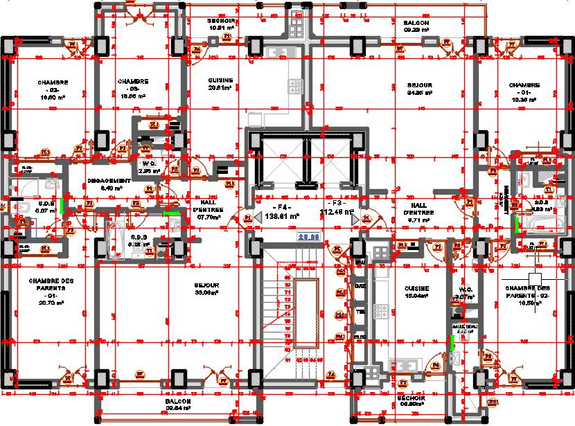 23x15m Block A2 3rd floor apartment plan design is given in this 2D DWG drawing model. Lifts are available for the two houses. This is a 3bhk, and 1bhk house plan. On this floor, two houses are available. On the first house, the living room, balcony, master bedroom with attached toilet, kid’s room with attached toilet, guest room, kitchen, and common bathrooms are available. On the second house 2 bedrooms are available. The living room, balcony, master bedroom with attached toilet, kid’s room with attached toilet, kitchen, and common bathrooms are available. For more details download the AutoCAD drawing file from our Cadbull website.