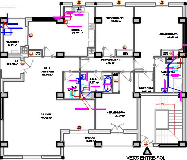 17x14m architecture apartment second floor house plan is provided in this CAD drawing. This is 4bhk house plan. On this plan, one house is available. The living room, parent’s bedroom with attached toilet, two kid’s room, guest room, kitchen, dining area, balcony, work area, and two common bathrooms are available on this floor. For more details download the AutoCAD drawing file from our Cadbull website.