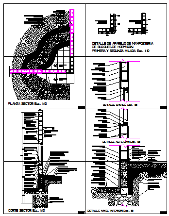 here the Constructive detail of wall in concrete block design drawing with section and detailing in this auto cad file.