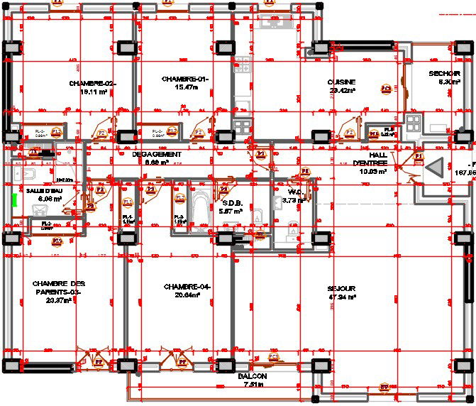 17x20m D 7fh floor house model is given in this file. On each floor, single house is available. This is a 4bhk house plan. The living room, kitchen, entrance area, master bedroom with attached toilet, two kid’s room, guest room, balcony, and two common bathrooms are available. For more details download the AutoCAD drawing file from our Cadbull website.