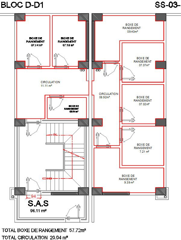 10x13m storage box area is given in this CAD drawing. The total area of the box storage is 57.72m2 and the total circulation area is 20.04m2. Totally 8 box arrangement area is provided, and 2 circulation area is provided. For more details download the AutoCAD drawing file from our Cadbull website.