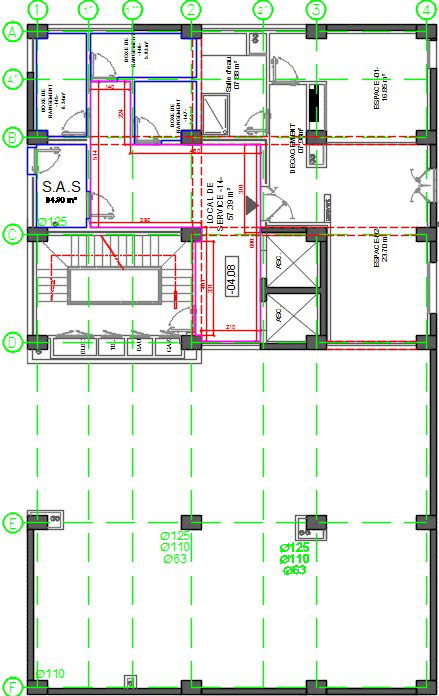 23x14m C block apartment ground floor plan AutoCAD drawing