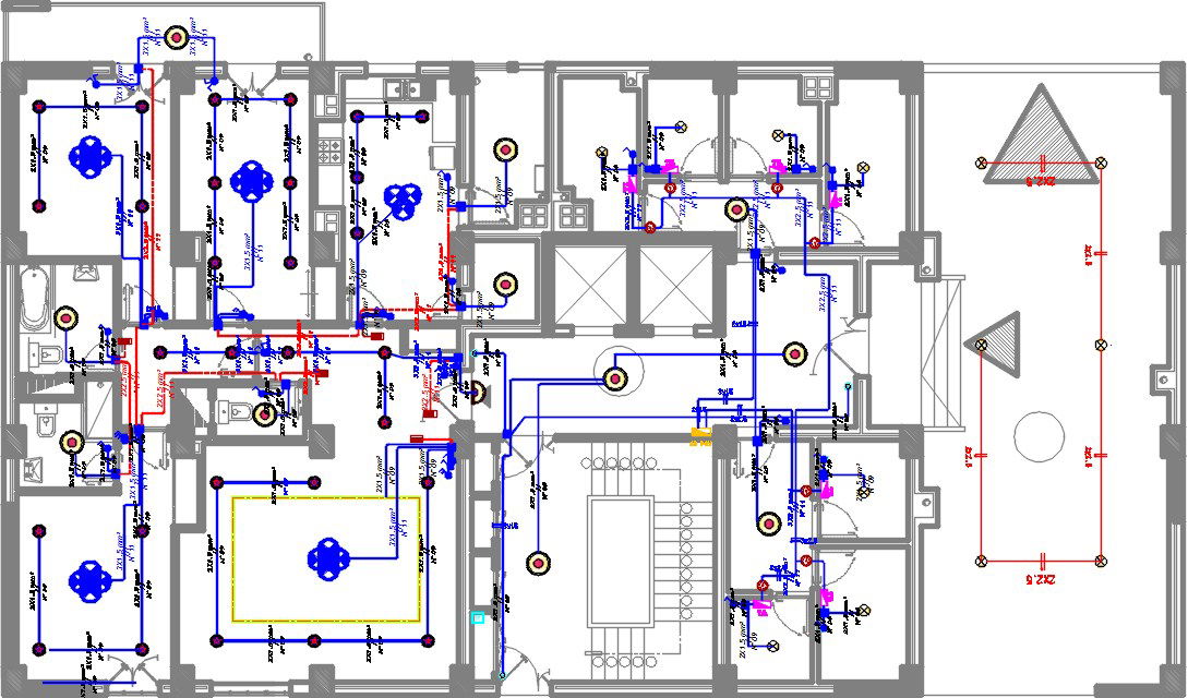 An electrical layout of the 26x14m apartment floor plan view is given in this CAD model