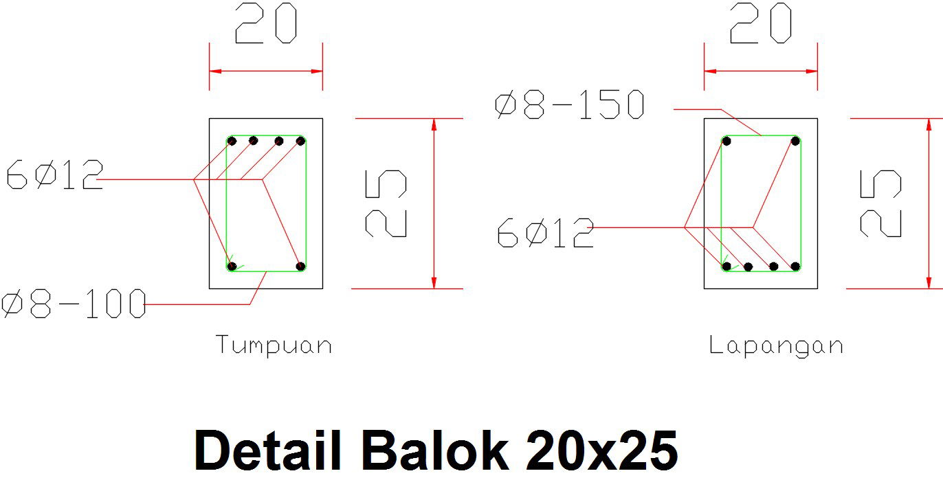 20x25cm theme park column cross section with reinforce detail drawing is given. At the top, 4 bars are provided. At the bottom, 2 bars are provided. At the top, 6 numbers of 12mm diameter rod is provided. At the bottom, 8mm diameter with 100mm spacing is provided. For more details download the AutoCAD drawing file from our Cadbull website.