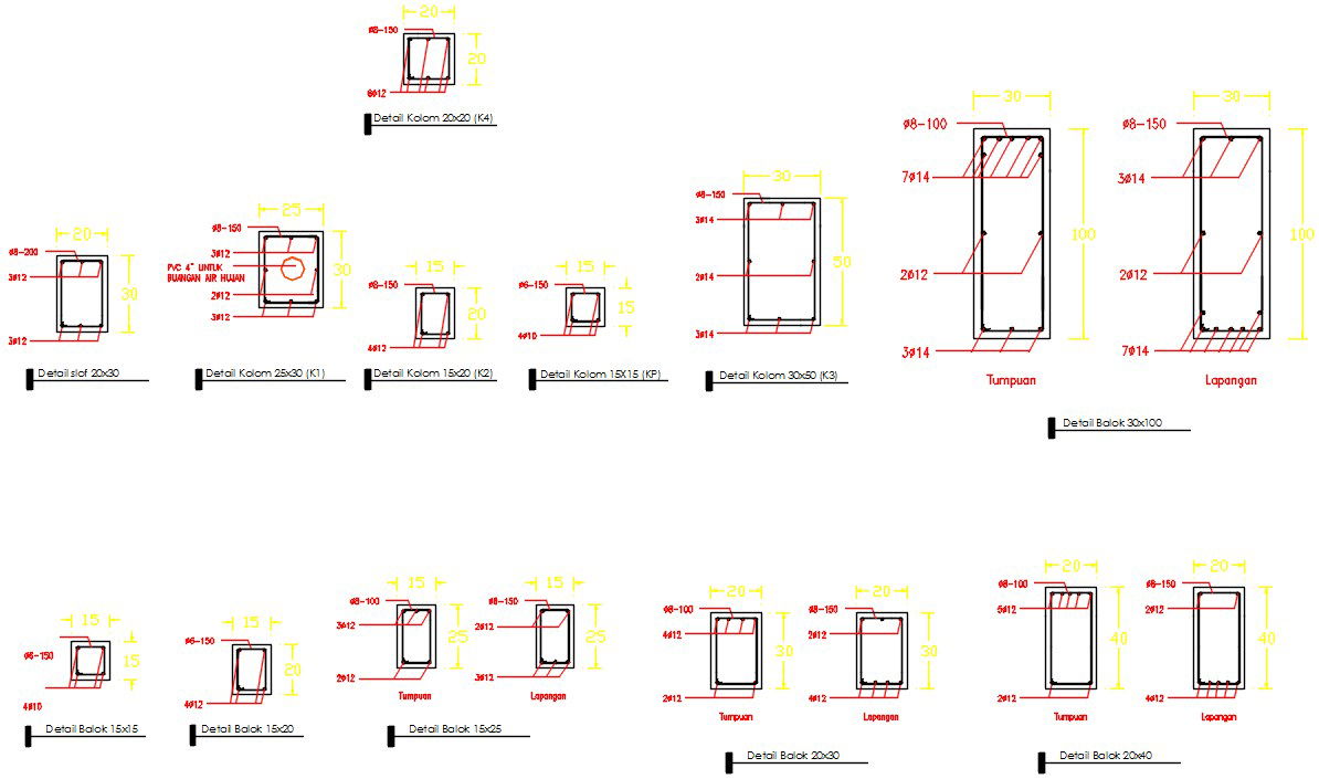 42x40m theme park column cross section AutoCAD drawing is given in this file. The dimension of the each column is given with reinforcement details. For more details download the AutoCAD drawing file from our Cadbull website.