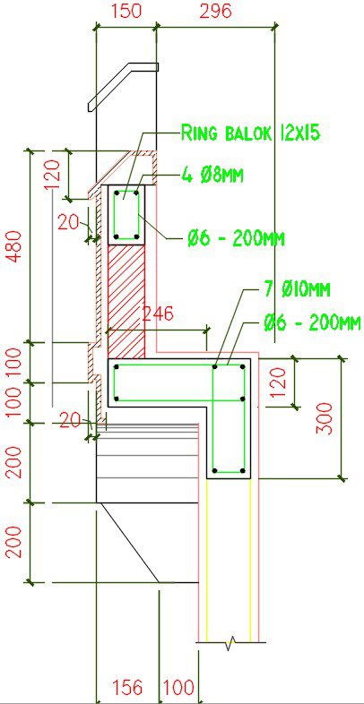 Chess game building front parapet wall section drawing is given in this model. Reinforcement details, and ring blocks are mentioned. For more details download the AutoCAD drawing file from our Cadbull website.