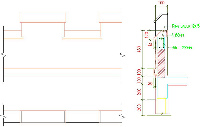 Chess game building parapet front elevation and section drawing is given in this file. Totally 4 numbers of bars are provided. Reinforcement details, and ring blocks are mentioned. For more details download the AutoCAD drawing file from our Cadbull website.
