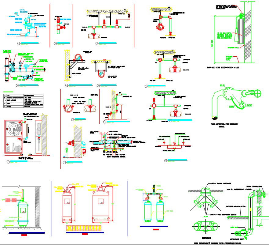 Detail of eh fire fighting system plan 2D drawing is given in this file. Alarm check valve, air release valve, sprinkler head, zone control valve, pipe support wall, pipe hanger thr’u slab, inspector test, fire hose cabinet, 4way breeching inlet, cylinder manifold arrangements, and other details are mentioned. For more details download the AutoCAD drawing file from our Cadbull website.