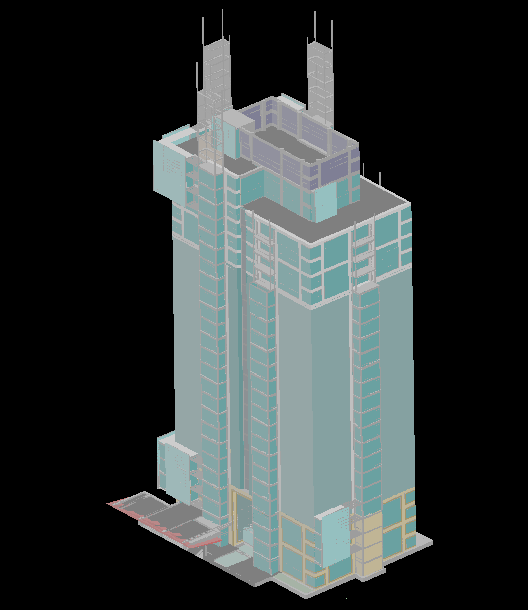 3D Building Tower DWG Design with Rendered and Structural View