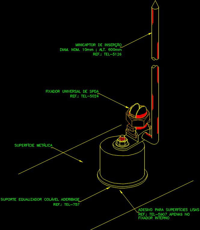 Fixing the mini captor on sup Metallic detail drawing is given in this file. Fixing the mini captor on sup Metallic which cannot be punched using aderi base equalizer support. Mini insertion captor, universal spda fixer, metallic surface, aderibase collaborable equalizer support, and adhesive for smooth surfaces are mentioned. For more details download the AutoCAD drawing model.