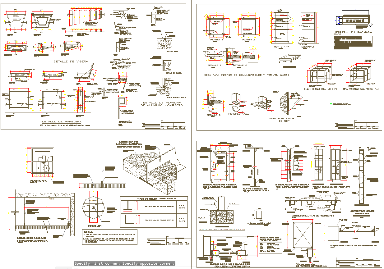 Constructions cad drawing of the lobby. Include various type of sections, elevations, working plan, slab detail, beam detail and isometric view of lobby include section.