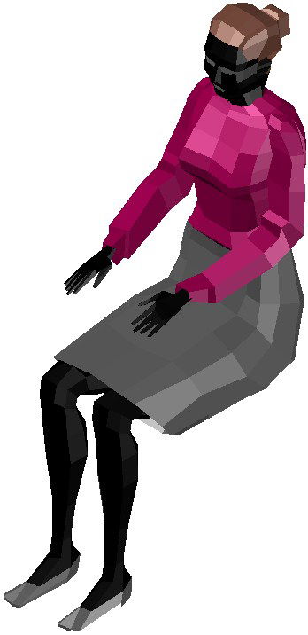 3D view of a girl sitting position CAD block