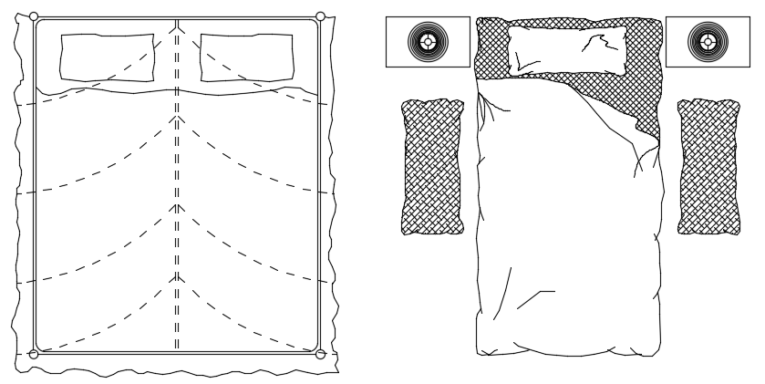 Singe bed and double bed plan AutoCAD drawing is given in this file. Top views of the beds are given. The first bed is king size bed. The second bed is a single bed. For more details download the AutoCAD drawing file from our cabull website.