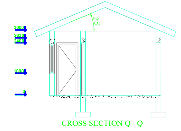 The section view of the 7x8m house building is given in this file. This is single floor house building. In this floor, the sitting room, verandah, bedroom, and bathroom are available. For more details download the AutoCAD drawing file from our website.