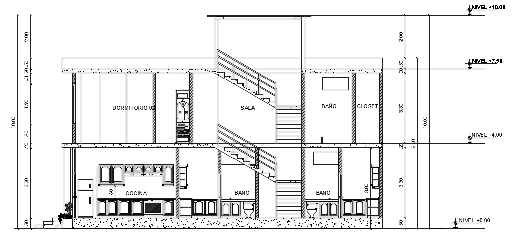 The section view of the 14x17m house building is given in this file. This is G+ 1 house building. On this ground floor, the living room, kitchen, family room, home theatre room, common bathrooms, dining areas are available. Outside, the barbecue kitchen, swimming pool, and bathrooms are available. On this first floor, the master bedroom with the attached bathroom, two kid’s bedroom with the attached bathroom, two guest room with the attached bathroom, and living room are available. For more details download the AutoCAD DWG drawing file from our cadbull website.