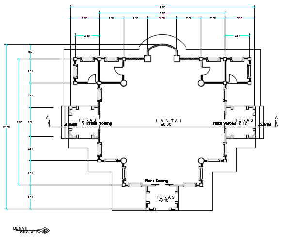 19x17m mosque plan 2D AutoCAD drawing is given in this file. Column locations are mentioned. For more details download the AutoCAD DWG drawing file from our cadbull website.