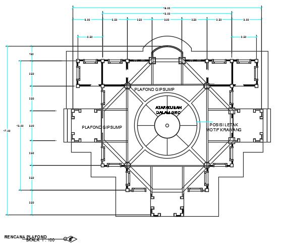 The ceiling layout of the 19x17m mosque plan 2D AutoCAD