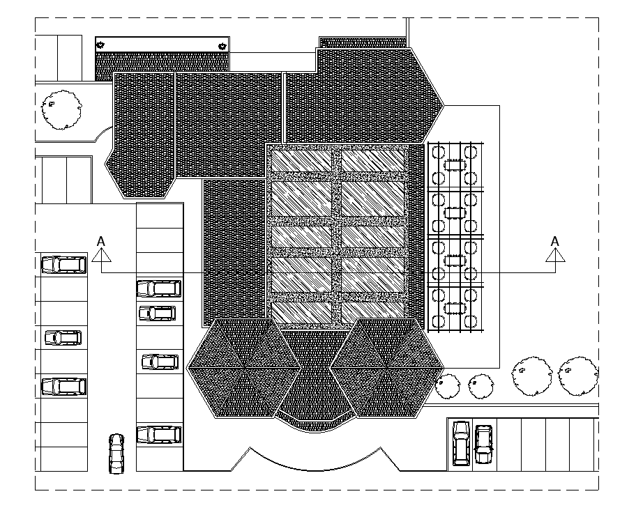 The roof layout of the restaurant plan is given in this AutoCAD drawing model