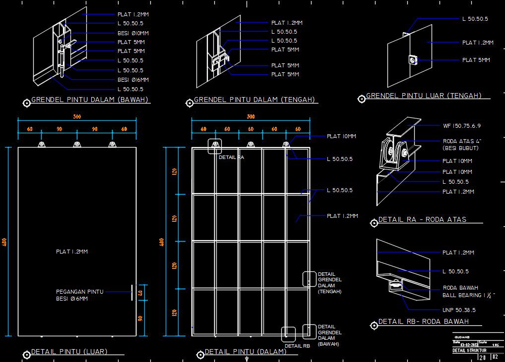 18x12m warehouse building inside & outside door detail drawing is given in this file. The height of the inside and outside door is 4.8m. And the width of the door is 3m. Inside door, and outside door Grendel details are given. For more details download the AutoCAD drawing file from our cabull website.