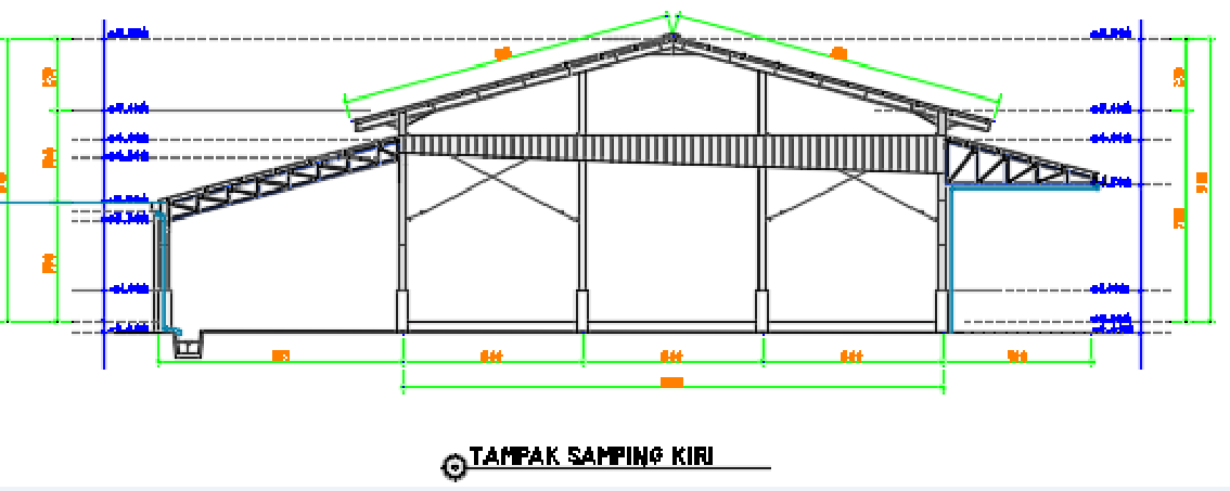 The ware house building left side section view drawing is given in this file. The height of the warehouse building is 9.58m. This is a single floor warehouse building. For more details download the AutoCAD drawing file from our cabull website.