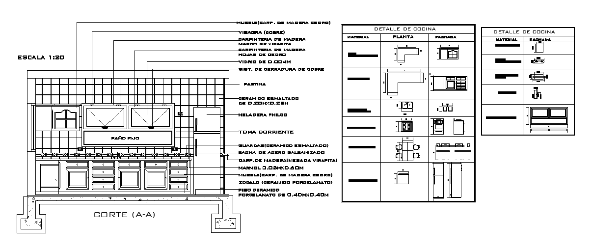 A detailed section view of the 5x3m kitchen is given in this AutoCAD file. Kitchen CAD blocks are given in this drawing. For more details download the AutoCAD drawing file from our cadbull website