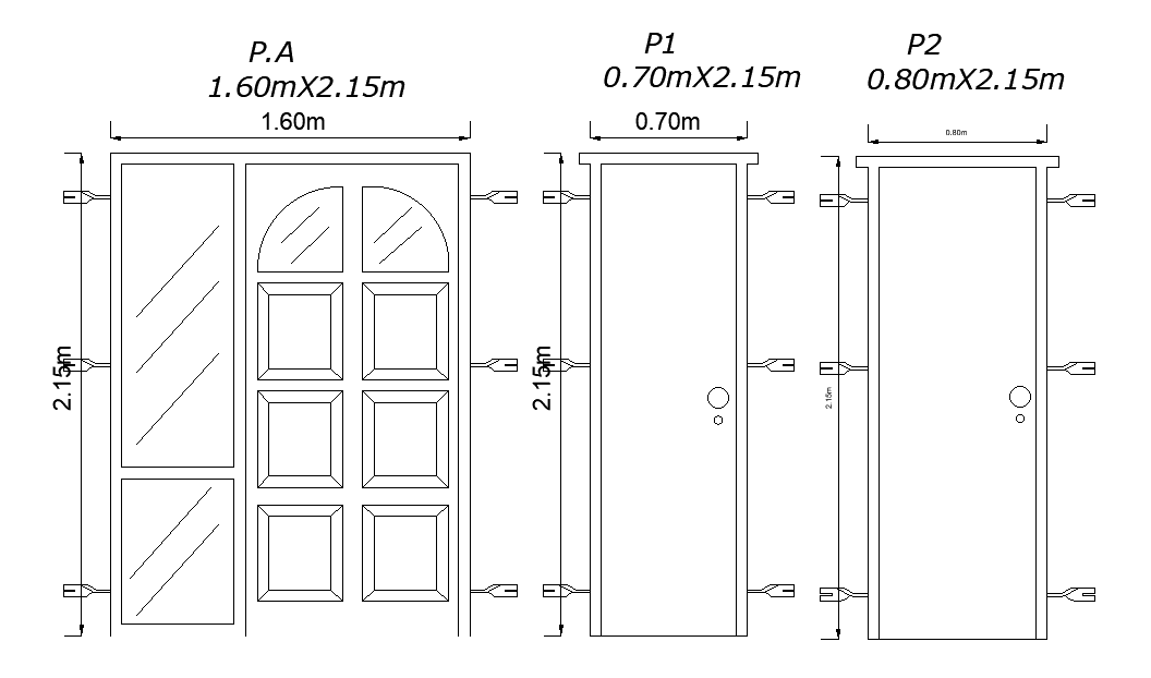 160x215cm door plan is given in this CAD model. This is provided to the 12x9m house building. In this, three different size of doors are given. For more details download the AutoCAD drawing file from our cadbull website