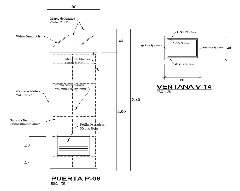 90cm length of the door plan AutoCAD drawing is given in this file. The height of the door is 2.4m. 60x40cm window plan is given in this model. This is provided to the swimming pool dress changing room building. For more details download the AutoCAD drawing file from our cadbull website