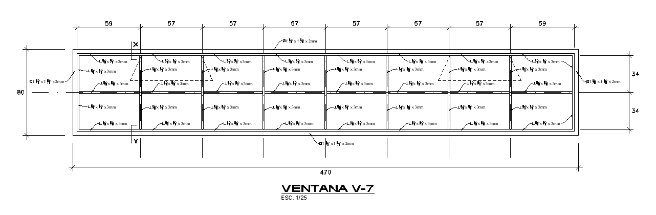 470x80cm window plan AutoCAD drawing is given in this file. The length and height of the window is 470cm and 80cm respectively. This window plan is given with 1:25 scale. For more details download the AutoCAD drawing file from our cadbull website