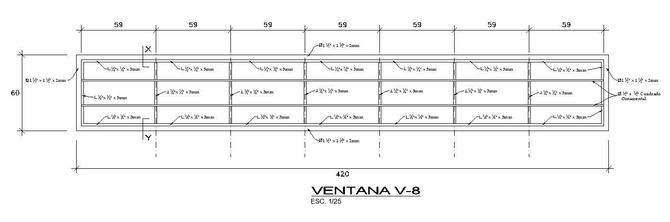 420x80cm window plan AutoCAD drawing is given in this file. The length and height of the window is 420cm and 80cm respectively. This window plan is given with 1:25 scale. For more details download the AutoCAD drawing file from our cadbull website
