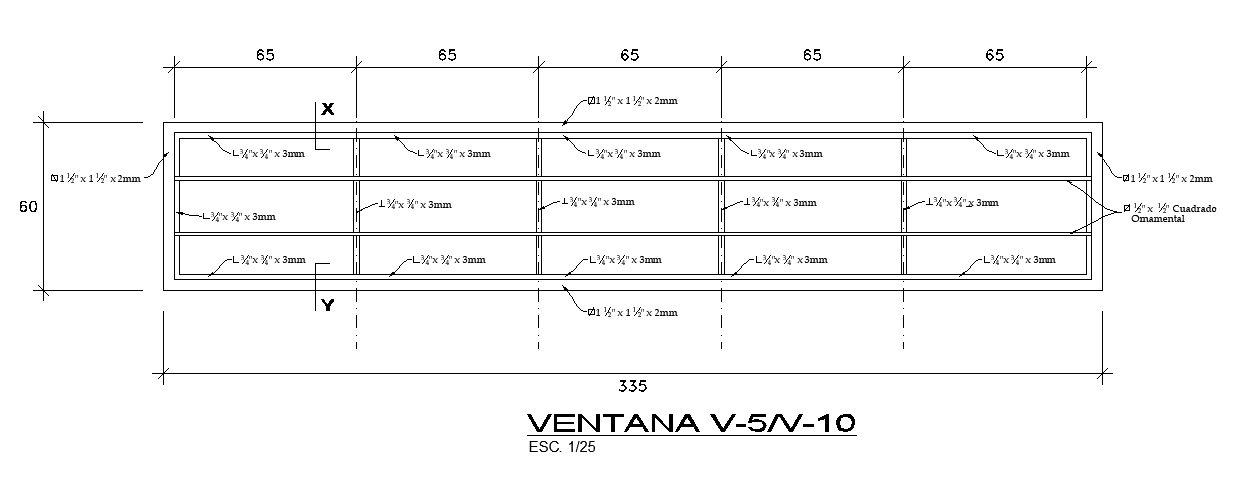 335x60cm window plan AutoCAD drawing is given in this file. The length and height of the window is 60cm and 60cm respectively. This window plan is given with 1:25 scale. For more details download the AutoCAD drawing file from our cadbull website