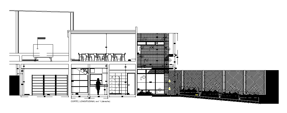 The longitudinal section view of the 51x53m training center institute building drawing is given in this plan. Car parking, reception, TV room & rest room, president's office, conference room, vip room, storage, kitchenette meeting room, study room, web hall, men's bathroom, ladies' bathroom, meeting room, photographers, information coordinator, editorial manager, photographers, 30 operating posts, room of surveillance and monitoring, layout coordinator, training room capacity for 42 people, and accounting rooms are available. For more details download the AutoCAD drawing file from our cadbull website